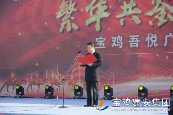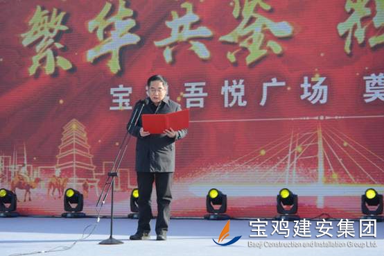 2018年1月16日上午,寶雞新城吾悅廣場(chǎng)項(xiàng)目奠基儀式在高新區(qū)舉行,該項(xiàng)目是繼恒大、碧桂園之后,寶雞高新區(qū)引進(jìn)的又一個(gè)千億級(jí)商業(yè)航母——新城控股集團(tuán)在西北地區(qū)建設(shè)的第二個(gè)一站式綜合廣場(chǎng)。奠基儀式上,公司董事長(zhǎng)景常榮代表施工單位致辭,新城控股集團(tuán)副總裁陸建華代表建設(shè)單位致辭,高新區(qū)黨工委書記、管委會(huì)主任郝晉升代表政府單位致辭。高新區(qū)管委會(huì)領(lǐng)導(dǎo)、新城控股集團(tuán)領(lǐng)導(dǎo)、寶雞建安集團(tuán)董事長(zhǎng)、寶雞市中小企業(yè)協(xié)會(huì)領(lǐng)導(dǎo)等為項(xiàng)目培土奠基。公司組織管理人員、施工人員共計(jì)300人參加了奠基儀式。